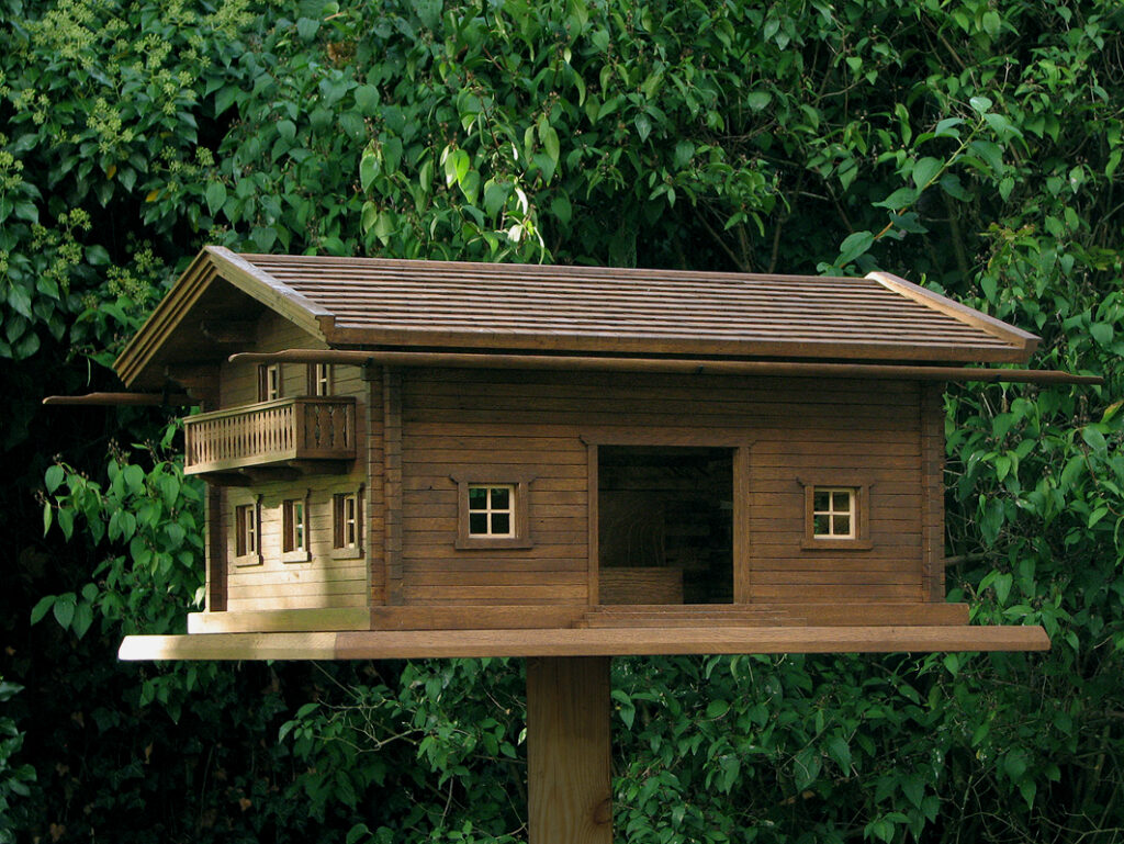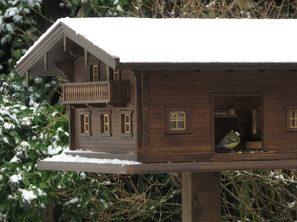 Hochwertiges Vogelhaus im Stil eines Chalets mit Dachschindeln